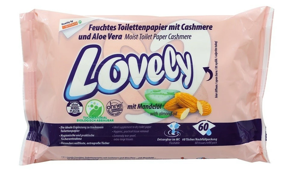 Вологий туалетний папір-салфетки Lovely Мигдаль і Алое Вера 60 шт.