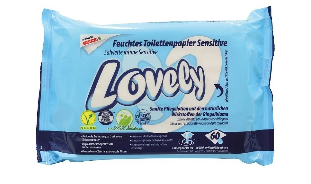 Вологий туалетний папір Lovely Sensitive підходить для використання