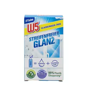 Достатньо просто розчинити одну таблетку у воді, а потім використовувати отриманий розчин для миття скла і скляних поверхонь. Спеціально розроблена формула допомагає ефективно видаляти сліди від пальців, пил і інші забруднення, залишаючи поверхні бездоганно чистими і прозорими. З W5 таблетками для миття скла, ваші вікна, дзеркала і інші скляні поверхні будуть блискучими і чистими без розводів.