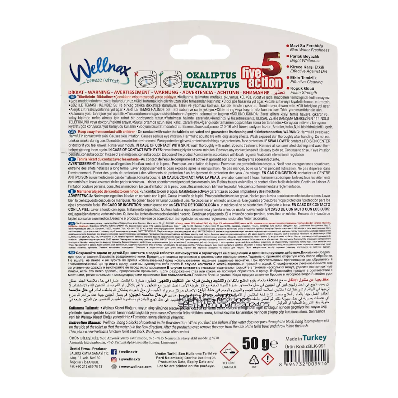 Wellnax Blue Water Туалетний блок Евкаліпт 1 шт 50 г – блок з