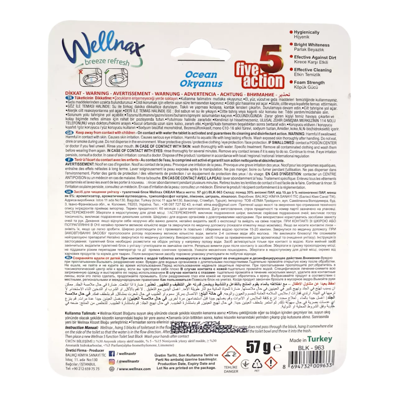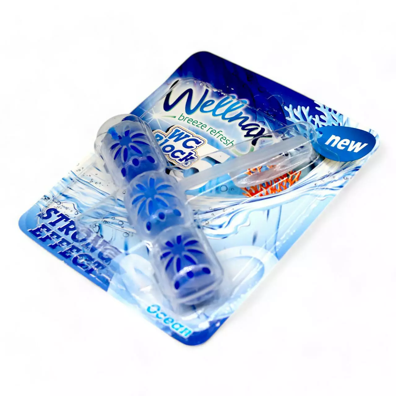 Wellnax Туалетний блок Океан 57 г ефективно очищає туалет. Його