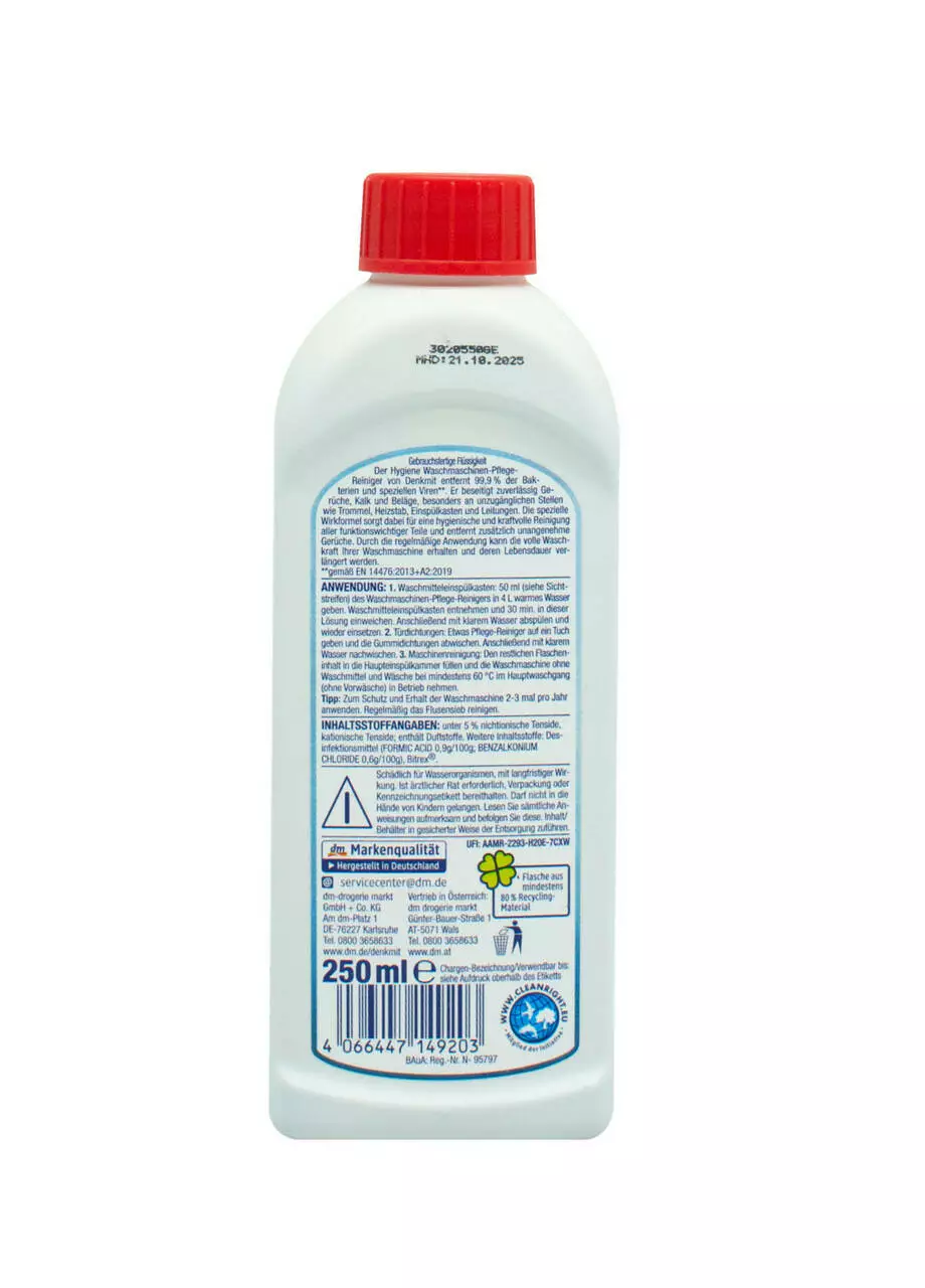 Використовуйте засіб для чищення пральних машин Denkmit 2-3 рази на рік для захисту та обслуговування пральної машини