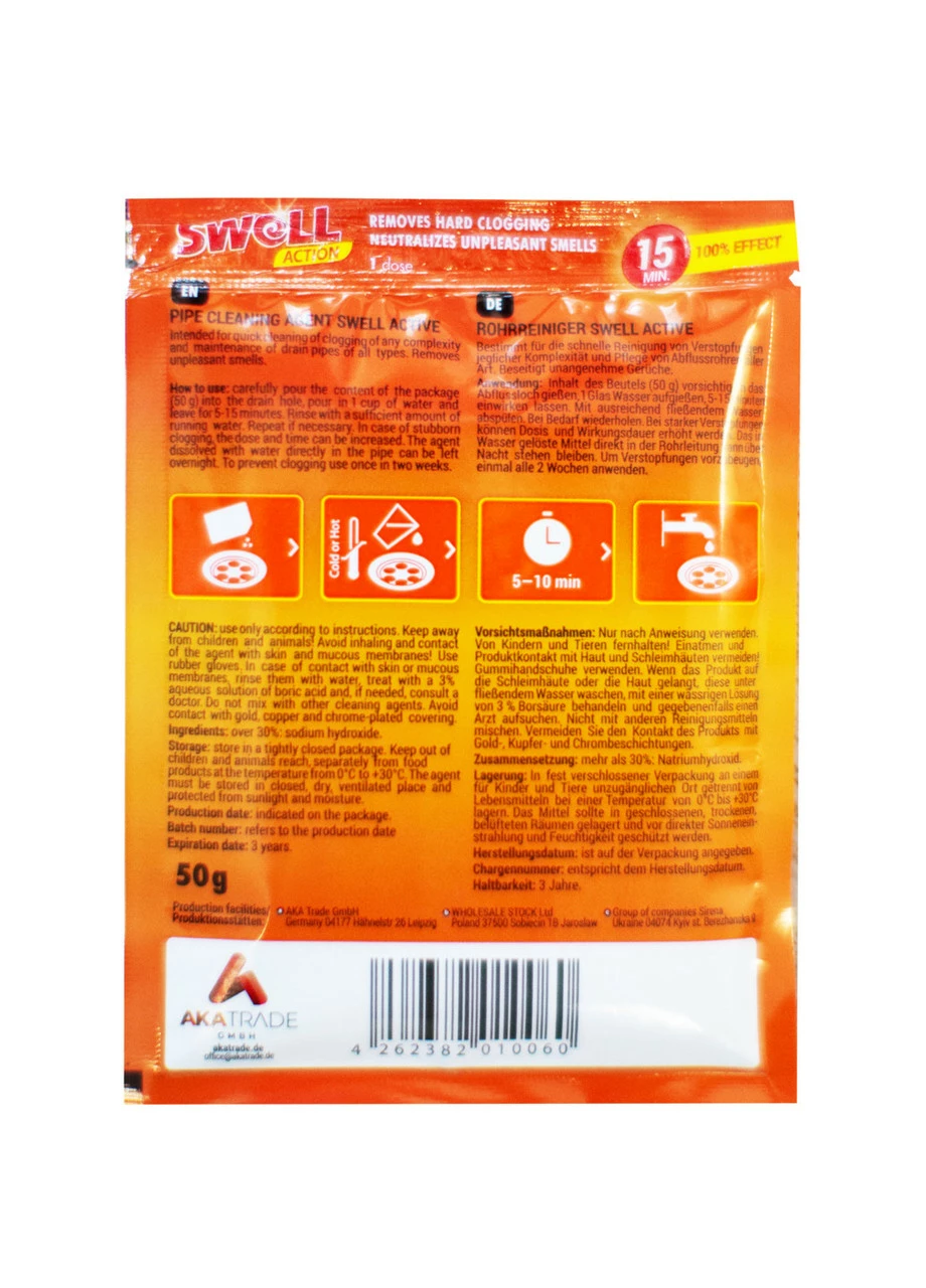 Засіб для чищення труб Swell ефективно очищає труби від засмічень: