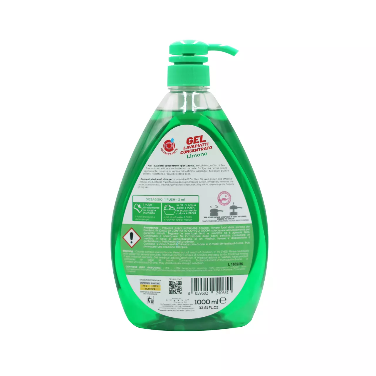 Гель для миття посуду з потужною знежирюючою та очисною дією. З інтенсивним ароматом лимону.. майже парфумована вода для посуду. З ефірною олією чайного дерева відомий природний антибактеріальний засіб. Завдяки формулі з нейтральним рН, ніжний до рук, не сушить шкіру.