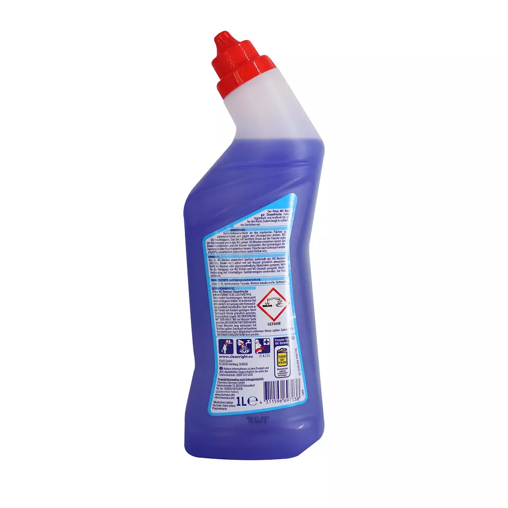 Priva Ocean для очищення унітазу, призначений для видалення бруду різного характеру, в тому числі вапняного нальоту. Розчиняє навіть стійкі відкладення. Він забезпечує чистоту та залишає чудовий освіжаючий аромат морської свіжості, а завдяки спеціальній формі дістає навіть до важкодоступних місць.