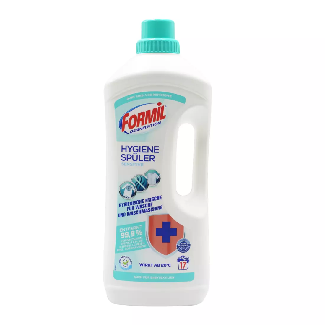 За допомогою гігієнічного ополіскувача Formil ваш одяг буде гігієнічно чистим при температурі від 20°C. Завдяки ефективній формулі усувається до 99,9% вірусів. Гігієнічний ополіскувач також не містить барвників і ароматизаторів, тому ідеально підходить для використання з дитячим текстилем.