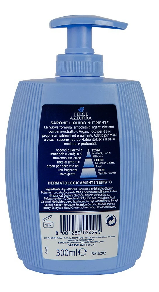 Рідке мило Felce Azzurra Ambra e Argan 300 млїдке мило ніжно очищає