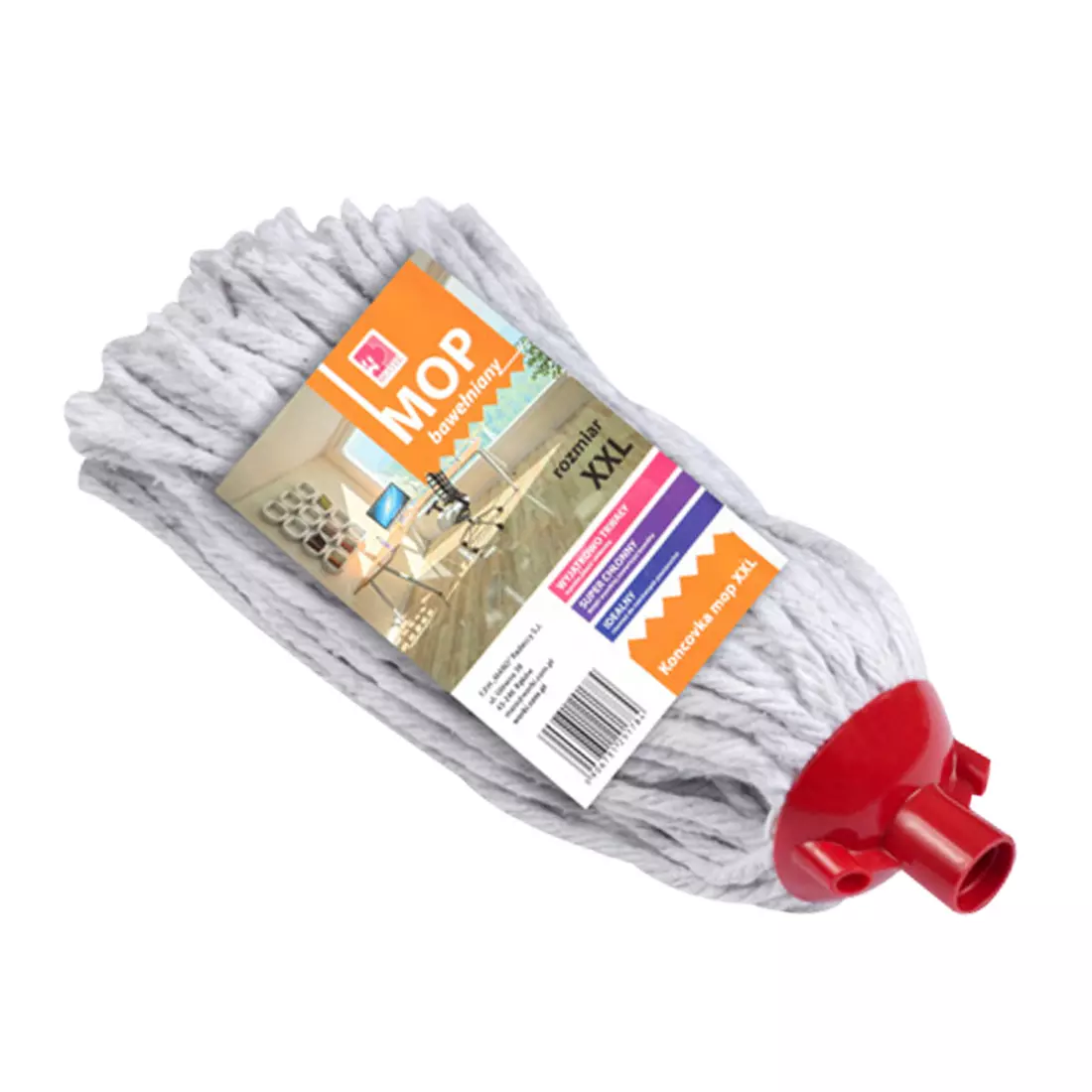 Насадка для швабри з бавовняного шнура, розмір XXL - наконечник з бавовни, дуже міцний, надзвичайно поглинаючий. Швидко вбирає воду разом із забрудненнями, легко звільняється від забруднень під час віджимання. Підходить до стандартних палиць і вичавок. Ідеальний розмір для великих поверхонь.