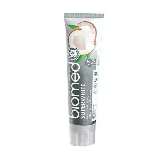 Зубна паста Biomed Superwhite містить понад 12 натуральних компонентів, які допомагають посилити відбілюючий ефект та забезпечують дбайливий догляд за зубами. Ці компоненти можуть містити рослинні екстракти, мінерали та інші природні інгредієнти.
