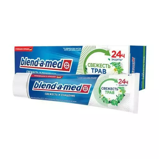 Зубна паста Blend-a-med Свіжість трав створює приємне відчуття свіжості у роті завдяки використанню колекції трав. Це може включати екстракти різних рослин, які надають освіжаючий аромат та почуття свіжості після чищення зубів.