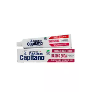 Називається ця зубна паста Pasta del Capitano Baking Soda, що з англійської перекладається як харчова сода. Ця зубна паста і її назва — це своєрідна данина багатовіковим традиціям догляду за зубами. Адже харчову соду, яка також міститься в цій пасті, ще з 18-го століття активно використовували для вибілювання зубів, розводячи її з водою. Саме сода з давніх-давен допомагала дбайливо й без шкоди для зубів усунути жовтизну та коричневий наліт із зубів. Зубна паста Pasta del Capitano Baking Soda не містить лаурил сульфат, формальдегіди, триклозан і парабени.