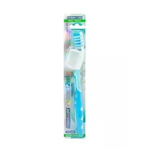 Зубна щітка Protect ефективно очищає поверхню зубів, ділянки між зубами та уздовж лінії ясен. Крім цього, щетинки дарують яснам корисний масажний ефект, що зменшує прояви гінгівіту. Щітка бездоганно впорається із нальотом (джерелом багатьох захворювань), та видаляє бактерії – причину неприємного запаху з рота.