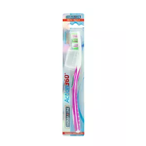 Ця щітка має середній ступінь жорсткості. Вона має кілька рівнів, тому краще очищає зуби вздовж лінії ясен та зубні проміжки. Щетина ретельно видаляє зубний наліт навіть у важкодоступних ділянках порожнини рота.